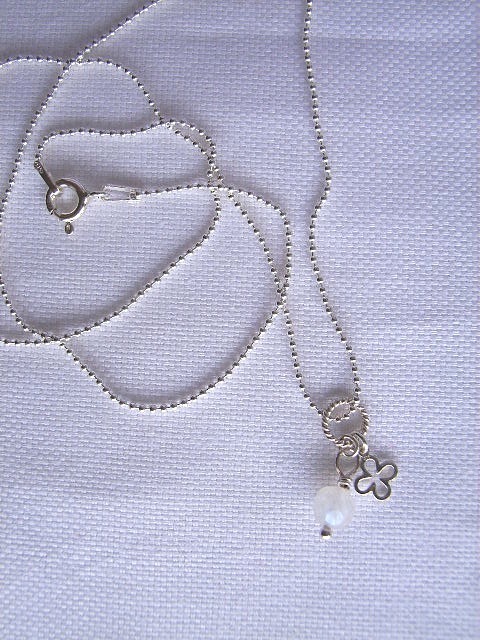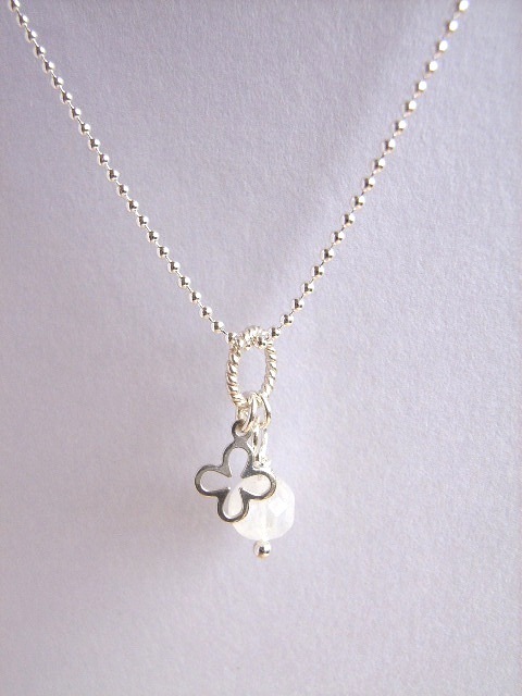 小さなシルバーのクロスの花と、ムーンストーンを一つに束ねました。