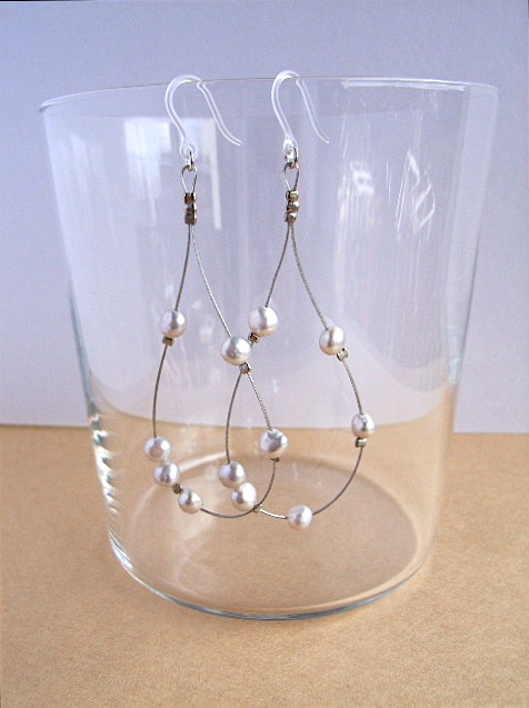 ナイロンでコーティングされたワイヤーで、 しずくの形の、とてもかるいパーツを作ってみました。 6粒のシルバーグレイの淡水パールが、 揺れにあわせて動きます。 フック部も樹脂製の、アレルギー&ストレスフリーなピアスです。 …………………………………………………………… 素材:ナイロンコーテッドワイヤー メタルパーツ 樹脂製フックピアス 淡水パール 大きさ:全長約5.2cm フープ横幅2.0cm …………………………………………………………… |