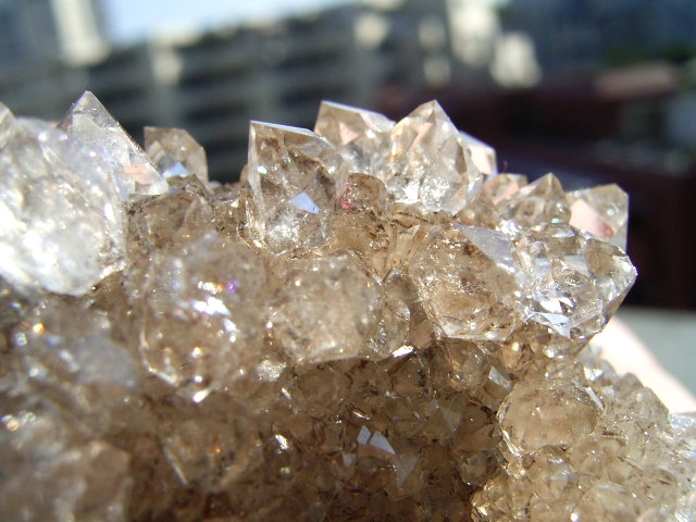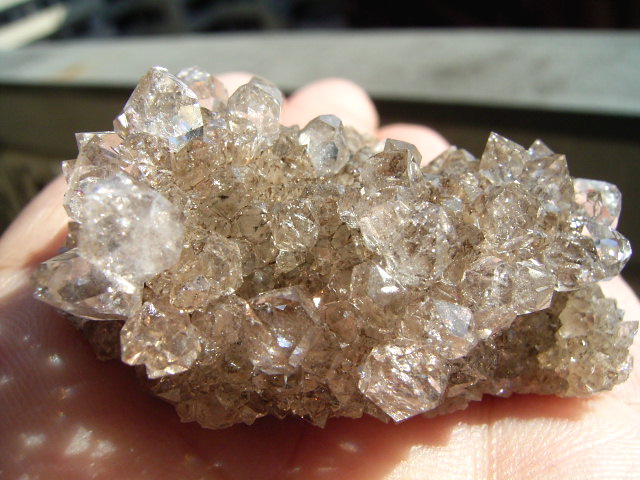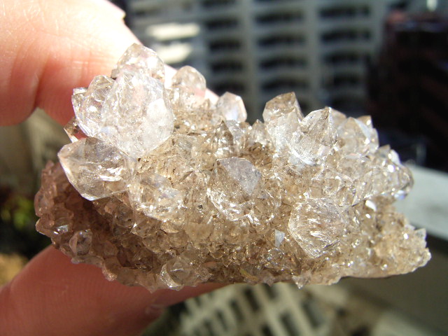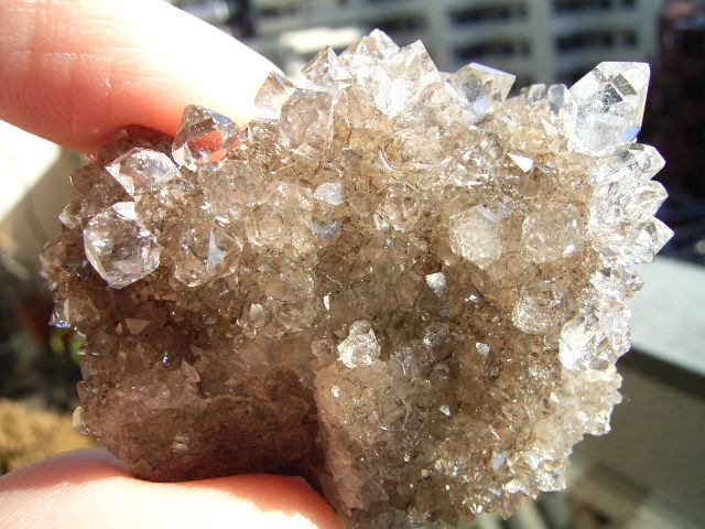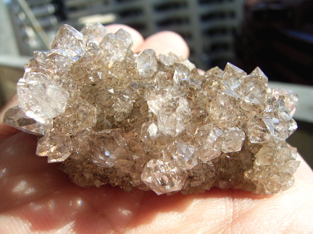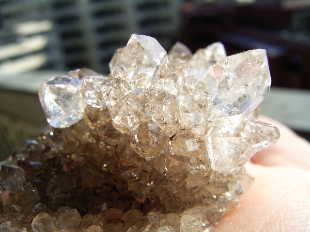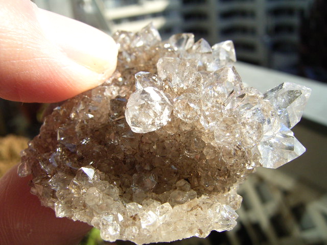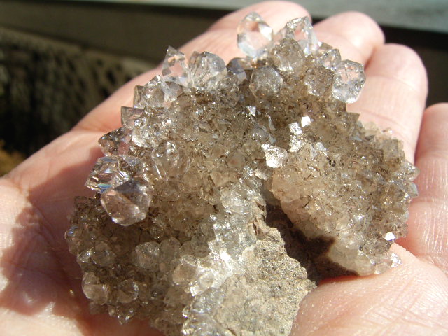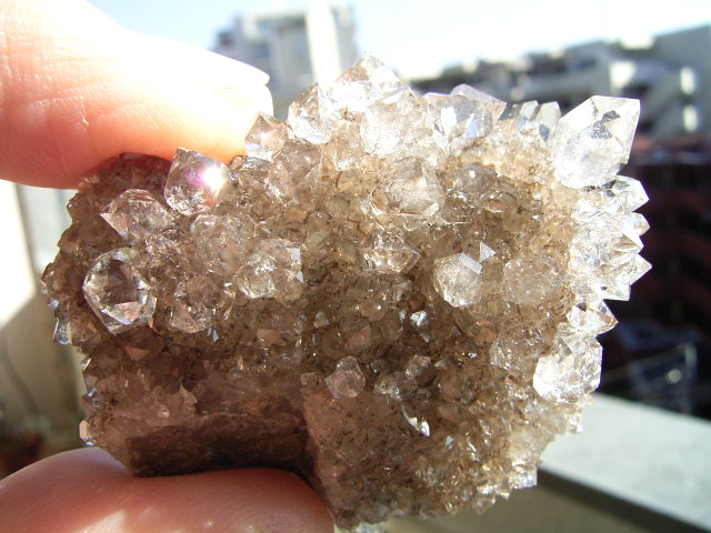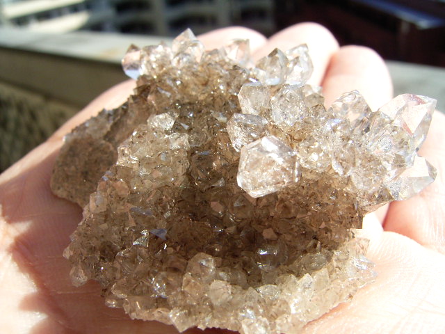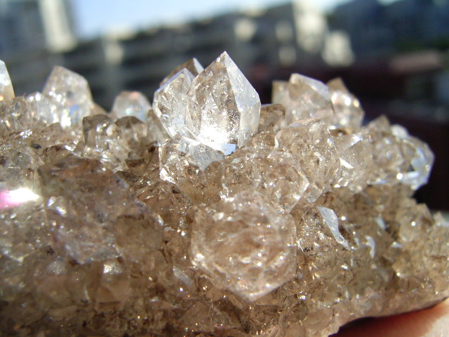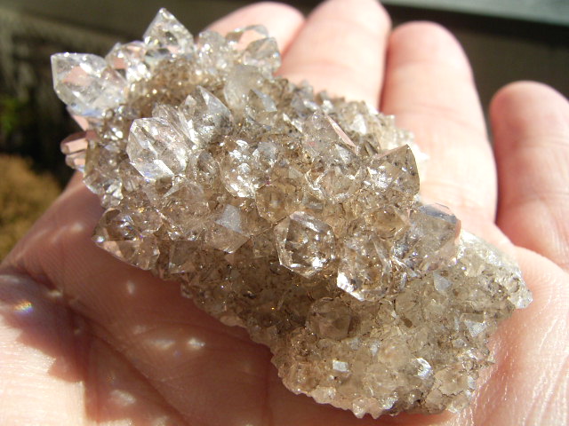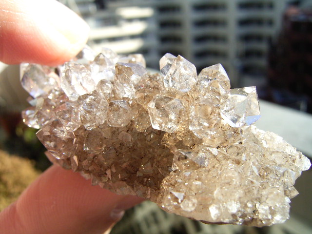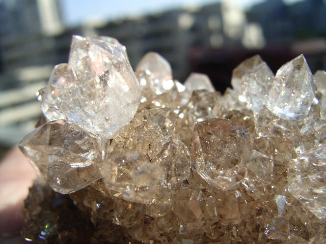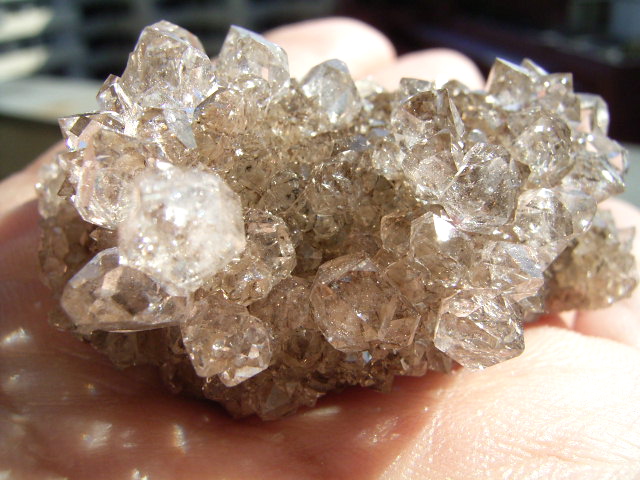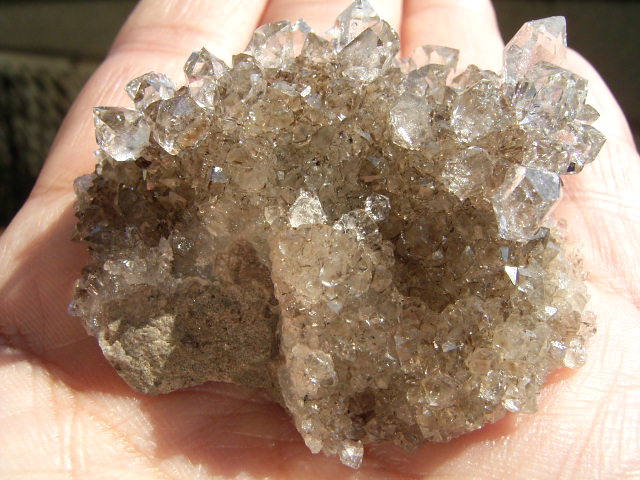 ★ドリュ・ドリューズィ:ハーキマーダイヤモンドは岩のくぼみに形成されますが、その時結晶の周りに出来る微小の結晶の群晶が『ドリュ』です。