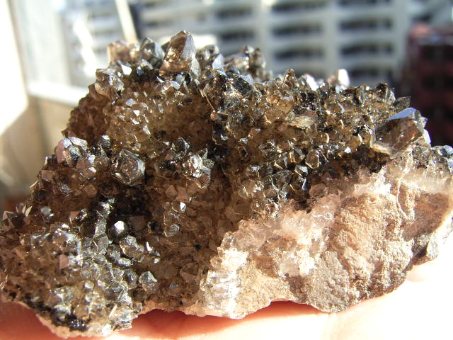 母岩の上に、無数のハーキマーの結晶がびっしり。1粒1粒が、ちゃんとハーキマーです。