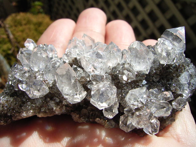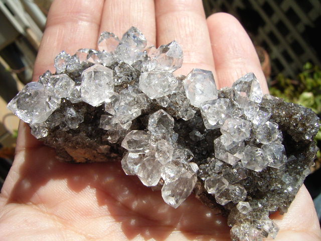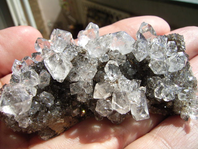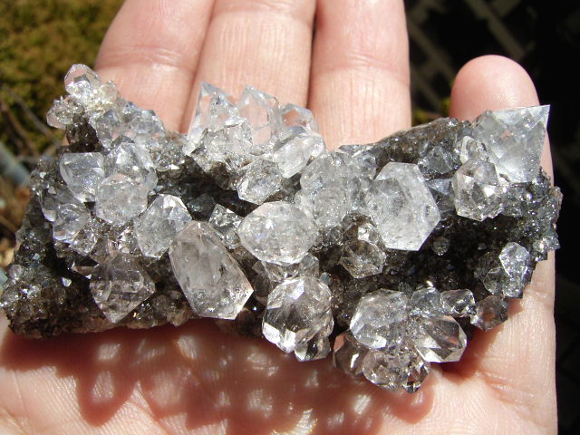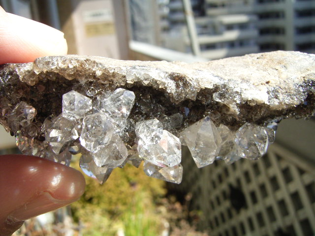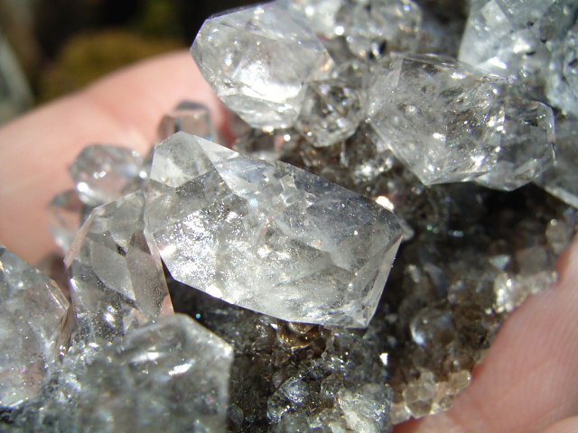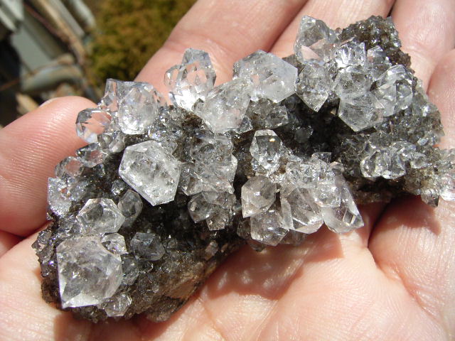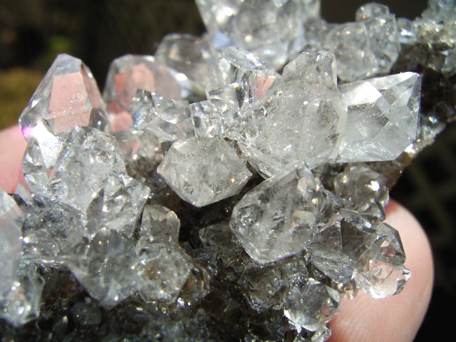 ★ドリュ・ドリューズィ:ハーキマーダイヤモンドは岩のくぼみに形成されますが、その時結晶の周りに出来る微小の結晶の群晶が『ドリュ』です。