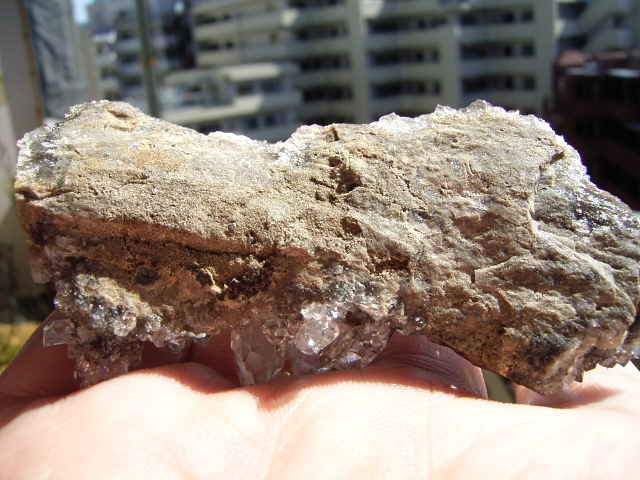 無数の小さなクリア結晶・ホワイトドリュが、母岩の上にびっしり。