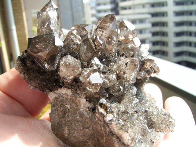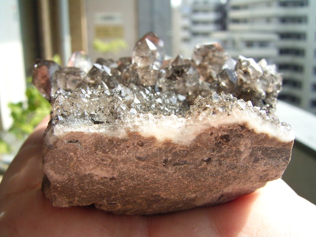 未洗浄ならではの、ドリュの標本らしい天然のままの状態で、かすかに現地ハーキマーの母岩特有の甘い匂いがしています。