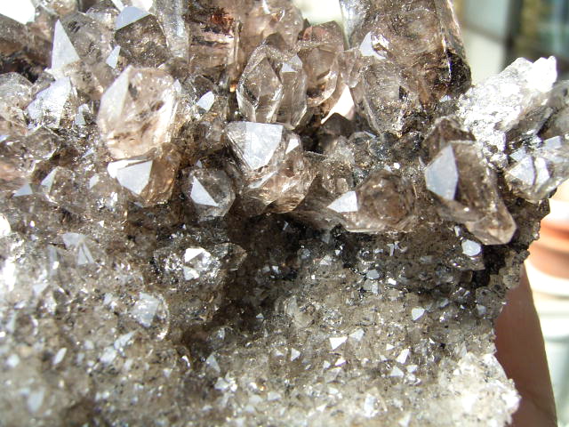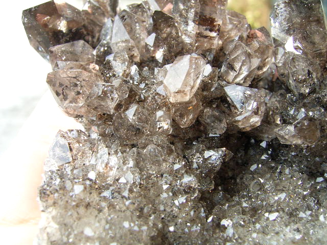 ★ドリュ・ドリューズィ:ハーキマーダイヤモンドは岩のくぼみに形成されますが、その時結晶の周りに出来る微小の結晶の群晶が『ドリュ』です。