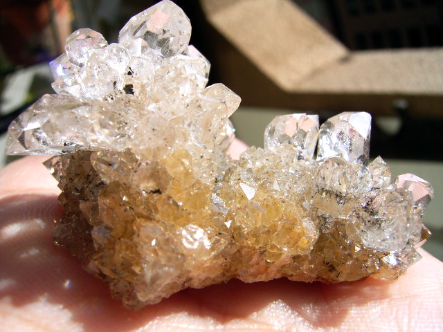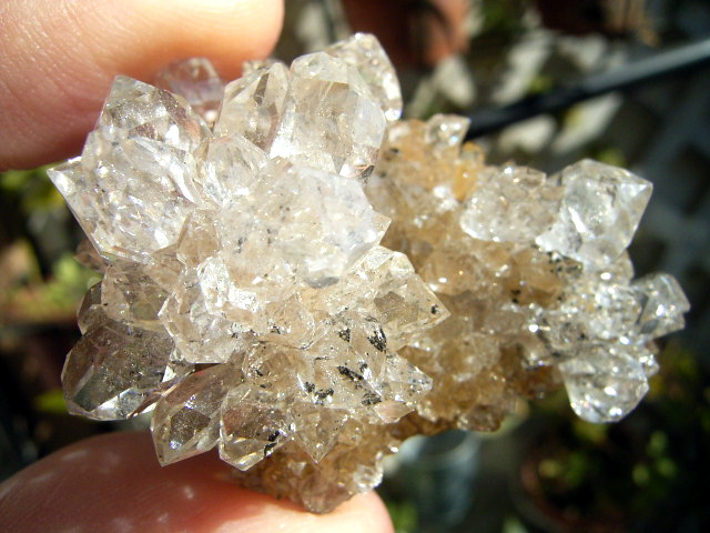 ★ドリュ・ドリューズィ:ハーキマーダイヤモンドは岩のくぼみに形成されますが、その時結晶の周りに出来る微小の結晶の群晶が『ドリュ』です。