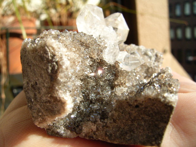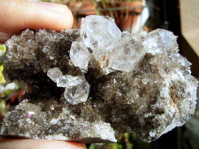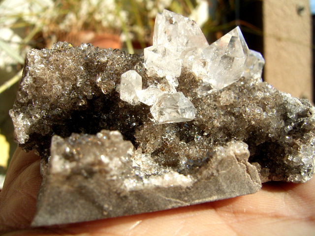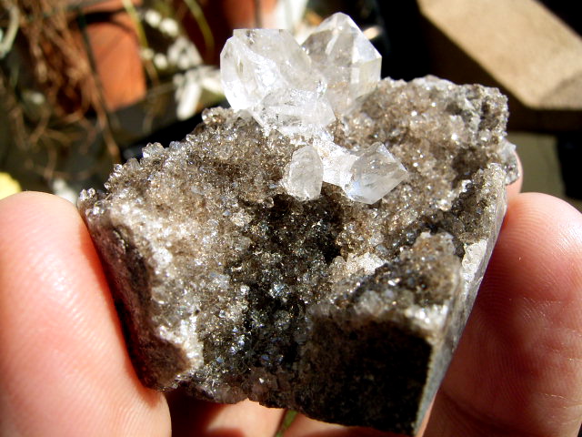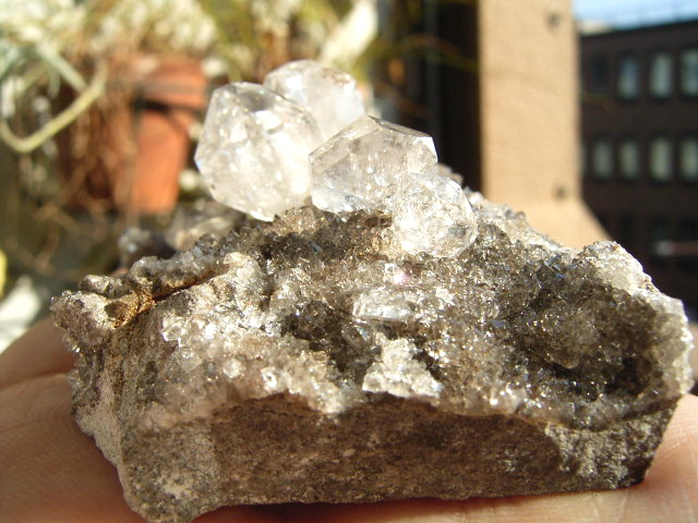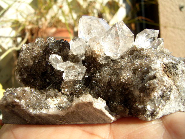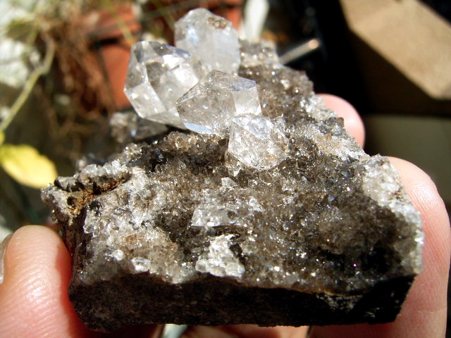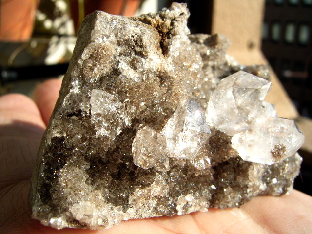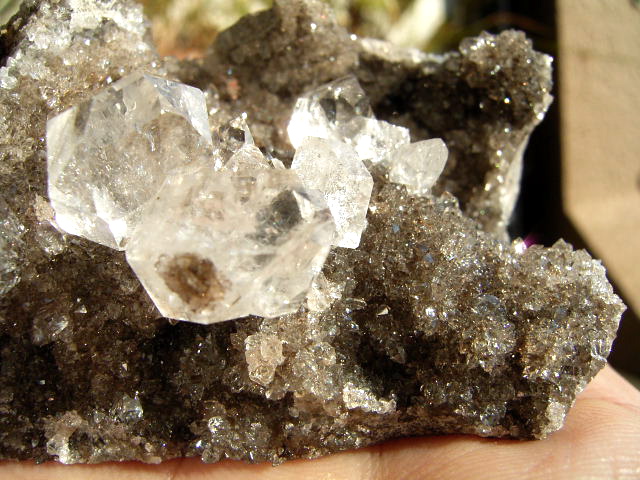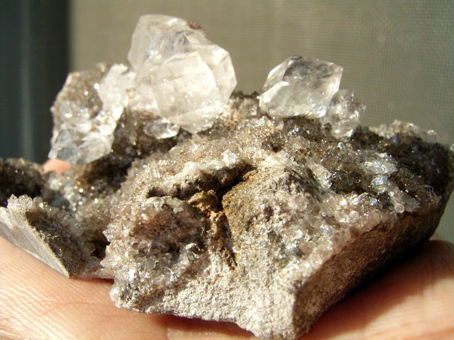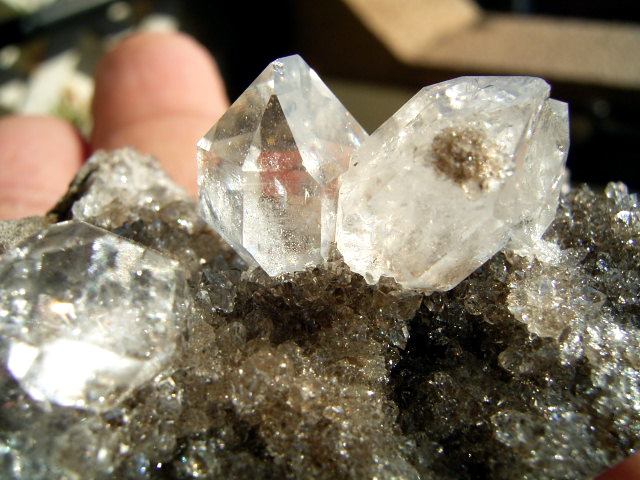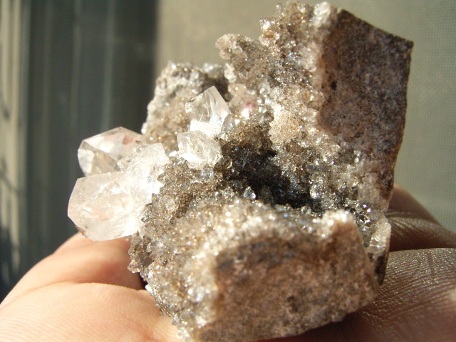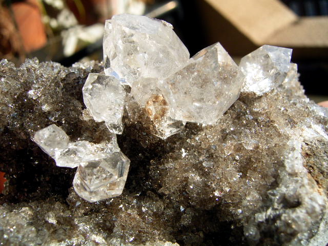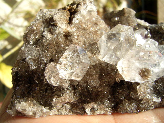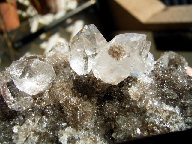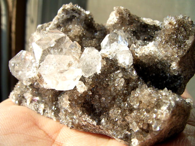 ★ドリュ・ドリューズィ:ハーキマーダイヤモンドは岩のくぼみに形成されますが、その時結晶の周りに出来る微小の結晶の群晶が『ドリュ』です。