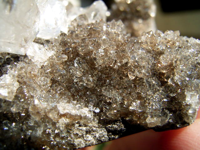 無数の小さなクリア結晶・ホワイトドリュが、母岩の上にびっしり。