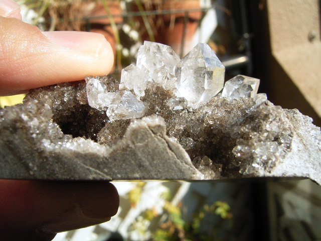 ドリュの形成は、ハーキマーの母岩(マトリックス)自体が晶洞となって、その先端に出来た結晶の集まりです。