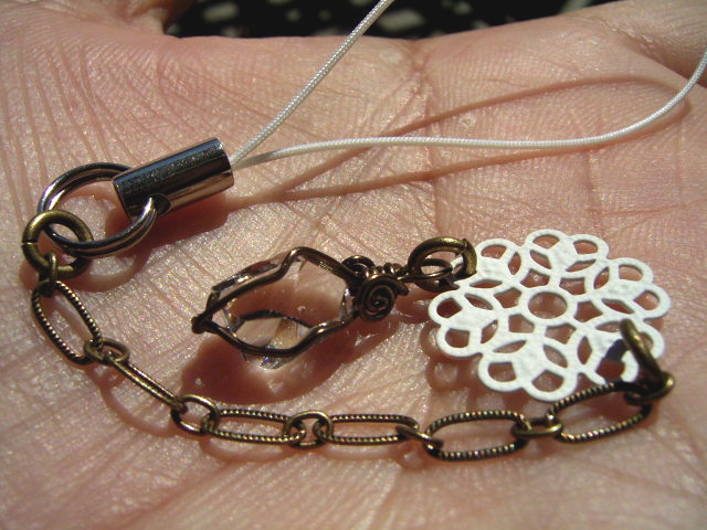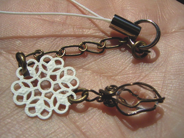 落ち着いた色合いのアーティステックワイヤーで、可愛いストラップにしてみました。