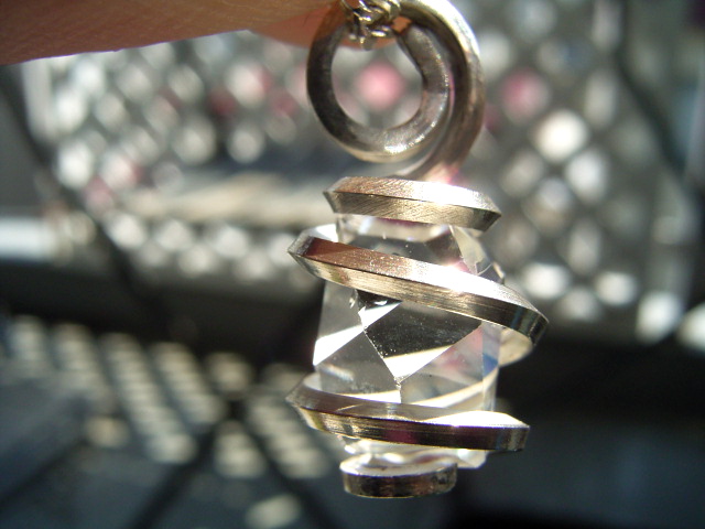10.5mmの可愛い美形結晶を、ひねりラップでペンダント加工。