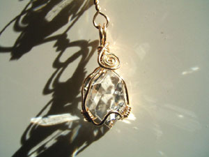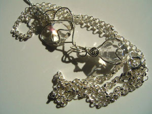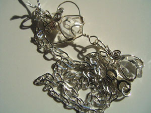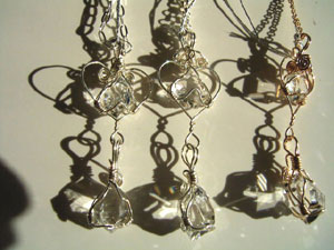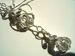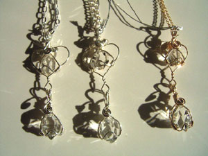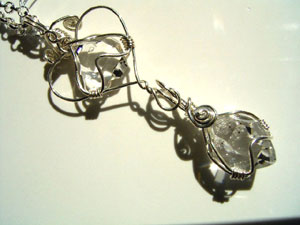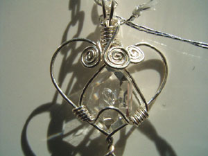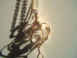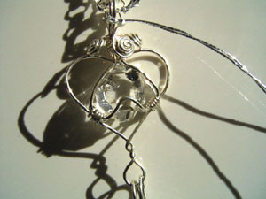 可愛さ優先のワイヤーワーク、この「ハートラップ」は、銀線が横に張り出すので、出来れば15mm以下の小さい石が向いているように思います。