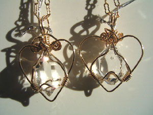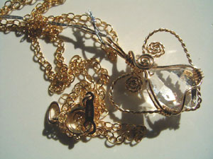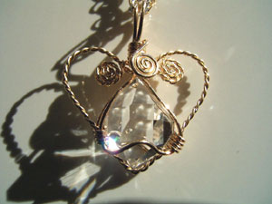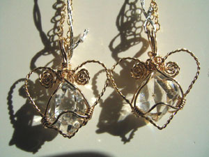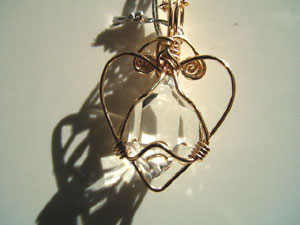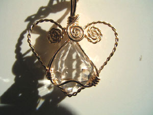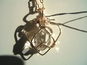 可愛さ優先のワイヤーワーク、この「ハートラップ」は、銀線が横に張り出すので、出来れば15mm以下の小さい石が向いているように思います。