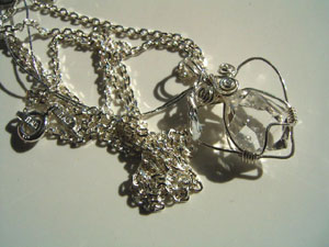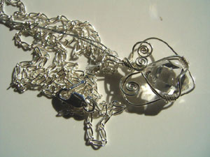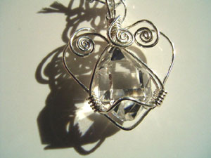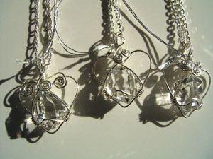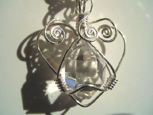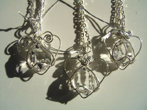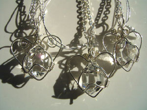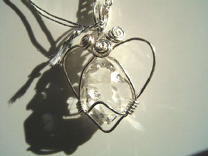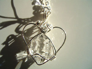 可愛さ優先のワイヤーワーク、この「ハートラップ」は、銀線が横に張り出すので、出来れば15mm以下の小さい石が向いているように思います。