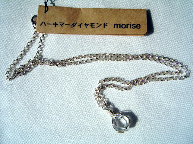 福岡でのマルシェ、「軒先市」「青空市」「ハコイチ」の小さな展示販売会用に、作ってみました。 綺麗な10mm石をシンプルラップにして、可愛いペンダントにしてみました。 どうぞ、可愛がって下さい。 …………………………………………………………… ヘッド: 16.2×8.4×5.0mm 重 量: 3.00カラット=0.60g 石 : 10.0×8.0×5.0mm グレード: ほとんどAAA〜美結晶・微細炭粉・無色透明 素 材: シルバー925線材+ボリューム40cmロロチェーン 作 者: nabo 撮 影: Caplio G4(弐号機) …………………………………………………………… |