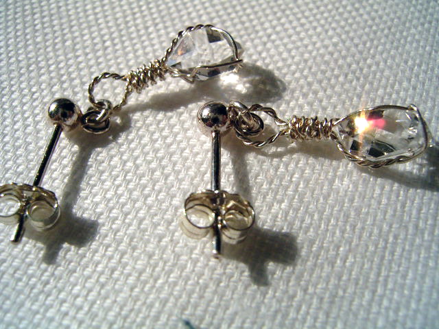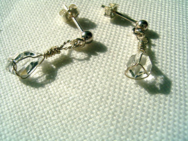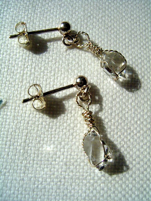 福岡でのマルシェ、「軒先市」「青空市」「ハコイチ」の小さな展示販売会用に、作ってみました。 シンプルラップで可愛いポスト&チャッチ式金具の、キュートなピアスです。 小さなハーキマーですが、とっても可愛い仕上がりで、キラキラキュートに揺れます。 石の微細要件は、肉眼では見えません。 どうぞ、可愛がって下さい。 …………………………………………………………… 全 長: 21.5×13.4×5.0mm ×ペア 重 量: 2.20カラット+2.25カラット=0.44g+0.45g 石 : 7.5mm (プチピアスサイズ)×ペア グレード: AA++・微細クリア結晶内包・無色透明 AAAパーフェクト・微細結晶オン・無色透明 素 材: シルバー925ポスト&チャッチ式金具 作 者: nabo 撮 影: Caplio G4(弐号機) …………………………………………………………… |