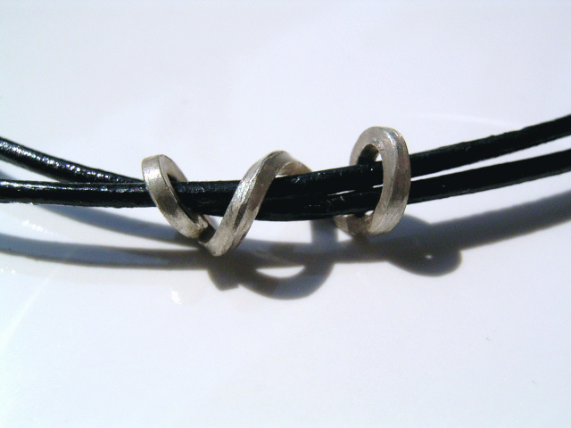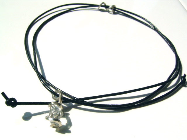 1.0mm シルバー角線・ひねりラップと、1.0mm 細革ひもの、キュートなチョーカーです。