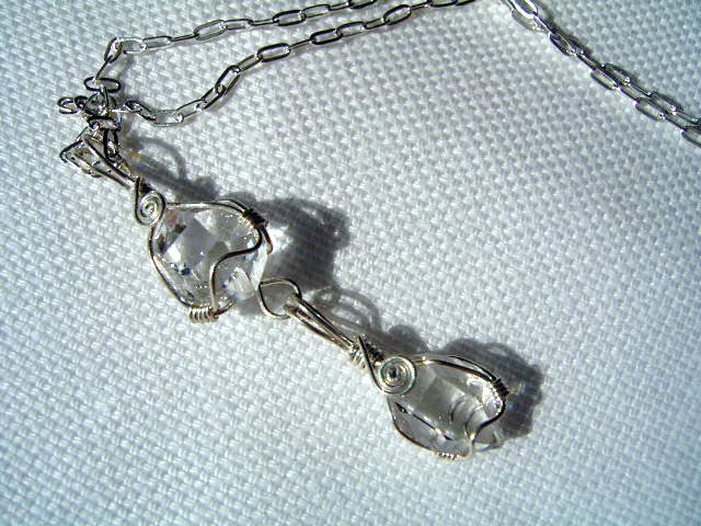 ショップ定番の、ハ−キマーを使ったワイヤーラップの「プチシリーズ」と「アクセサリー」の続きです。