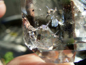 画像のように、柱面のエッジ寄りに8mmほどの結晶を飲み込んで、その柱面がわずかに表面に出ています。
