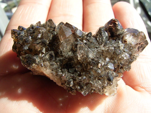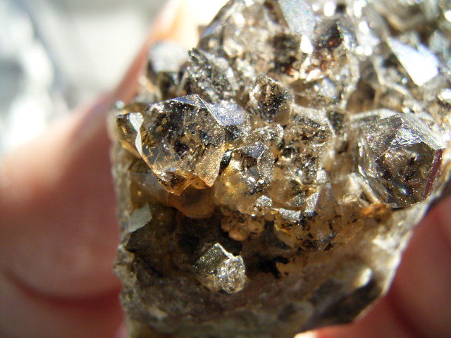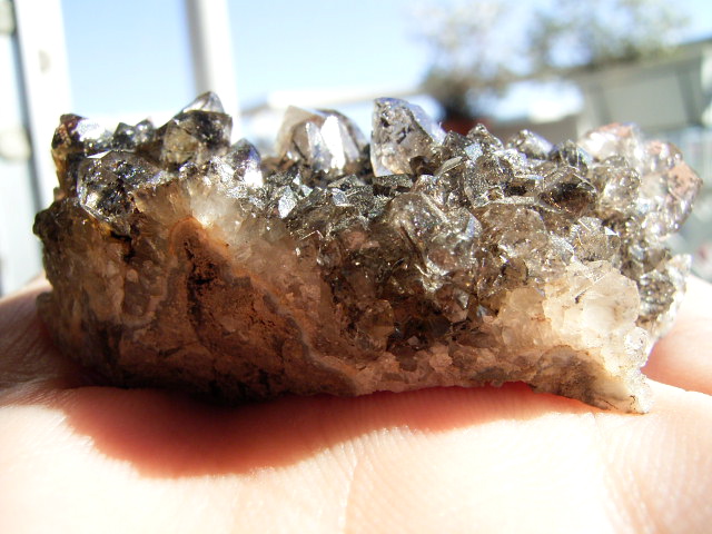 これは「洗われていない」採れたての標本です。 なので、うっすら現地ハーキマーの母岩特有の『甘い香り』がします。