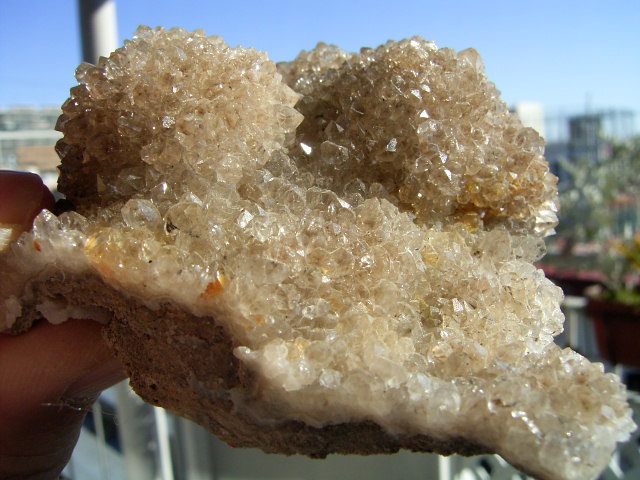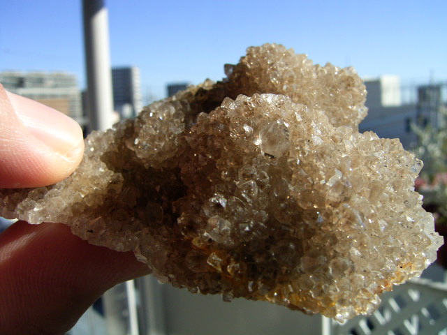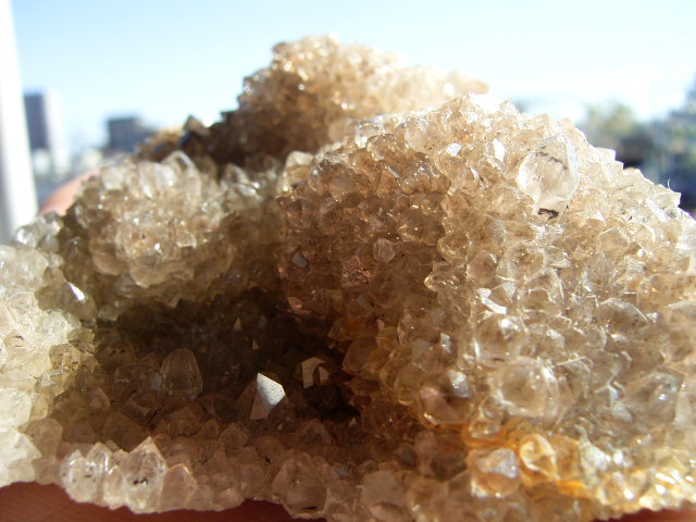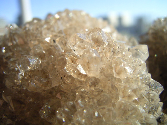 ★ドリュ・ドリューズィ:ハーキマーダイヤモンドは岩のくぼみに形成されますが、その時結晶の周りに出来る微小の結晶の群晶が『ドリュ』です。