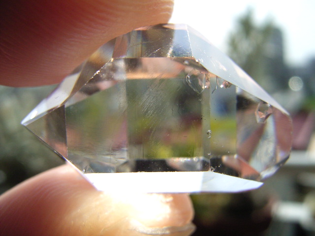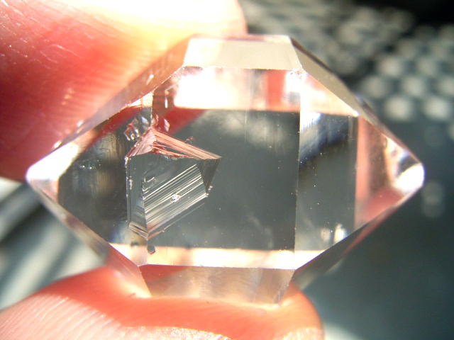 ファセット面のエッジの下に、0.5mmの透明結晶。