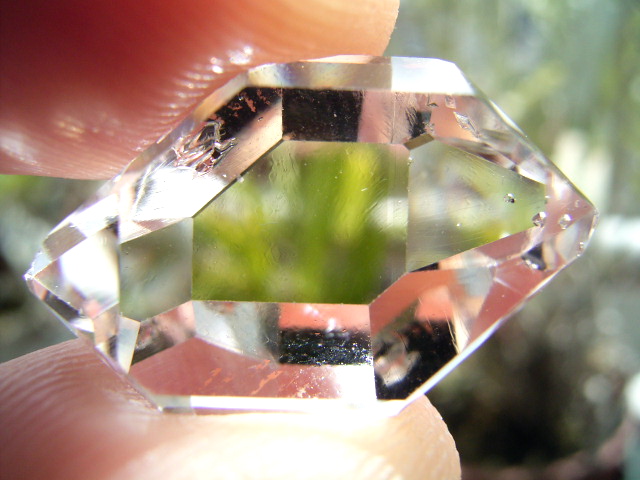 ほんのわずか、ファセット面の表面寄りに、不定形の気泡が1つ。