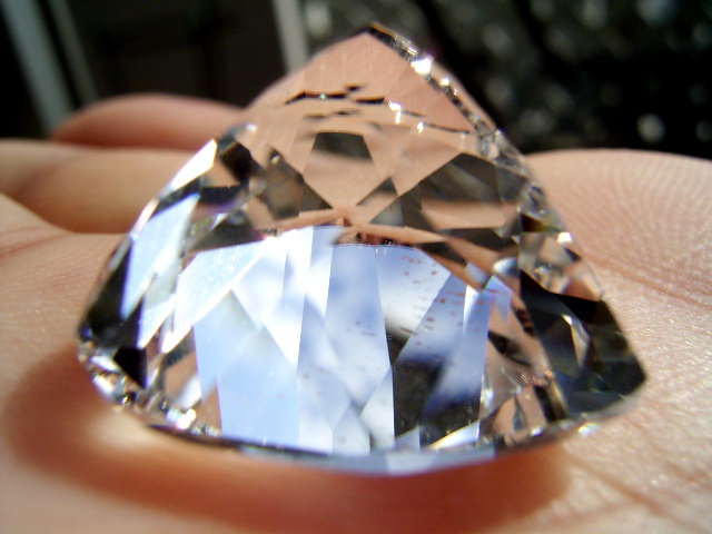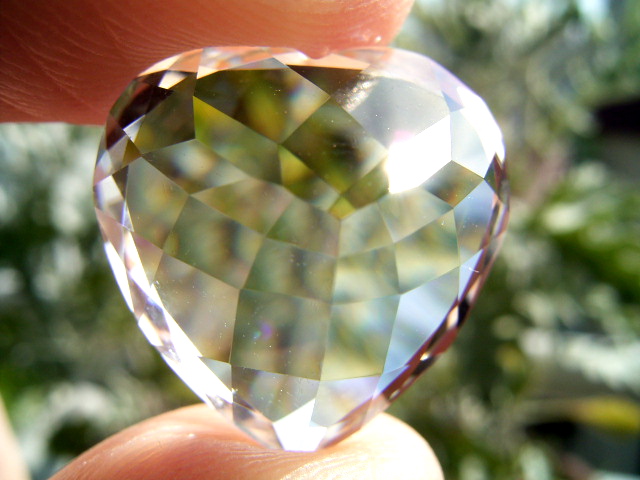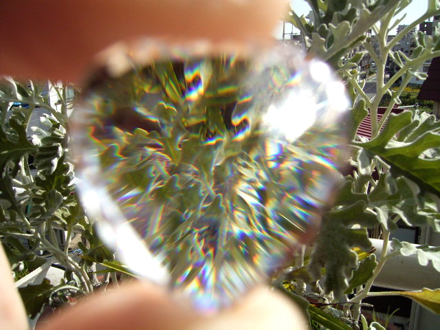 結晶の内側の面に光が集まって、プリズム効果とも相まって、虹のような反射が綺麗です。