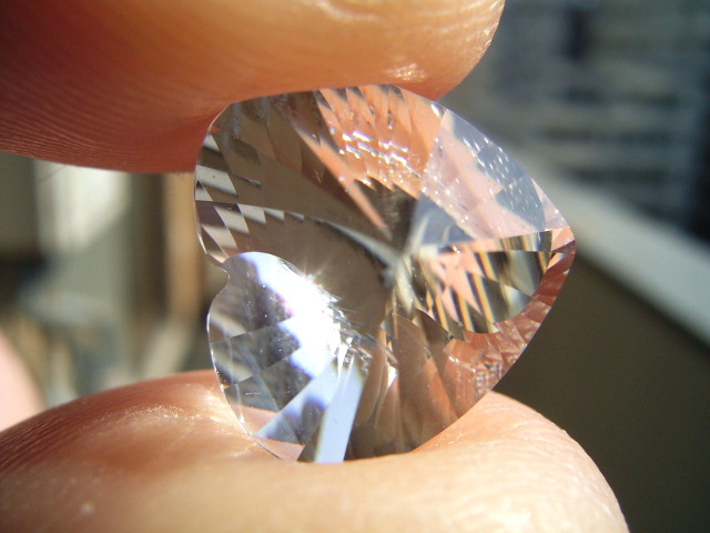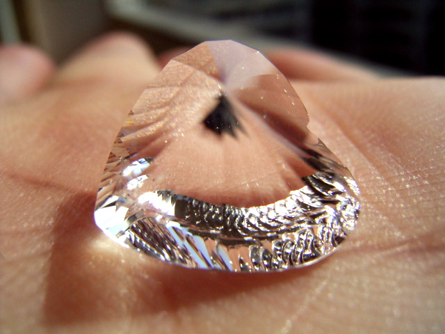 結晶の内側の面に光が集まって、プリズム効果とも相まって、虹のような反射が綺麗です。