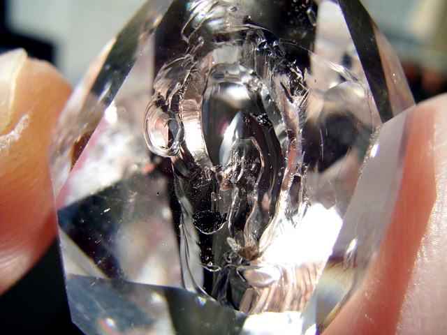 ファセット面に、気泡とクラスターの干渉由来のレリーフ(薄彫り)があります。