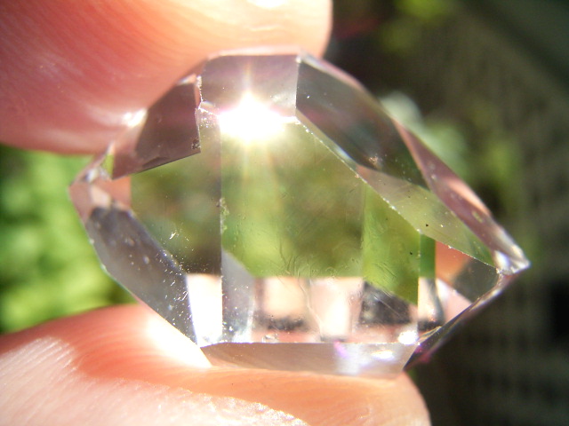 そこから対角のファセット面のエッジ先端寄りに、薄く3mmほどの小さな貝状のクラスター干渉が1つ。