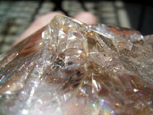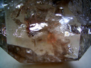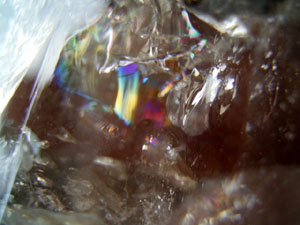 画像の通り…結晶内部には微細気泡と虹を持った幾つものカラーヴェール…そして劇的に広がる透明ヴェールの作り出す小さな宇宙の連なり。