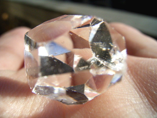 ファセット面に、小さな△波紋もルーペで見えますが、柱面を中心に、波紋の乱れ、極微細なクラスターの干渉があります。