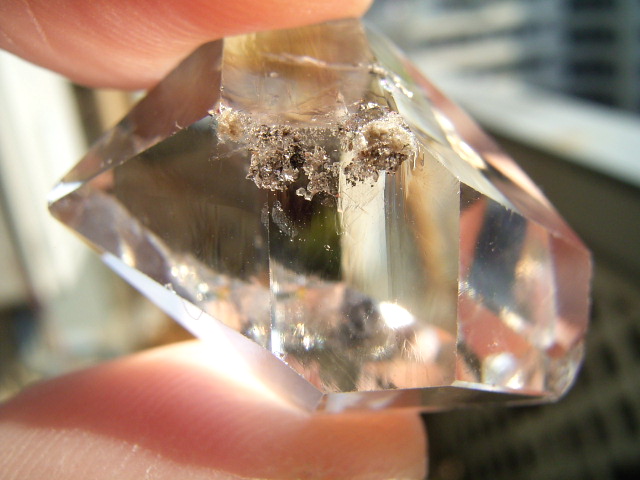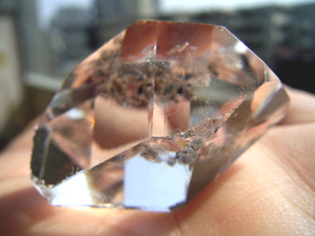 画像には写せませんでしたが、ファセット面の大△波紋は、結晶内部の△斜面の煙幻影スモークヴェールとリンクしているように見えます。