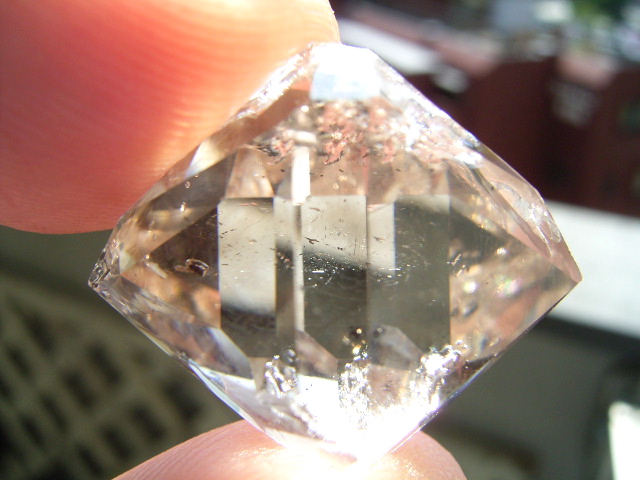 21.5mmですが、柱面の短い26.6カラットの超ボリューム極極美形(両剣ダウバランス)結晶です。