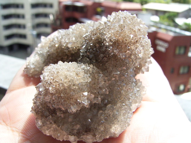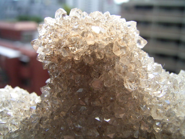 ★ドリュ・ドリューズィ:ハーキマーダイヤモンドは岩のくぼみに形成されますが、その時結晶の周りに出来る微小の結晶の群晶が『ドリュ』です。