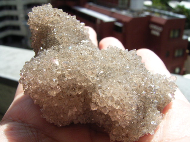 この小さな結晶すべてが『ハーキマーダイヤモンド』、数千粒の結晶が、細かい反射でキラキラします。