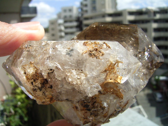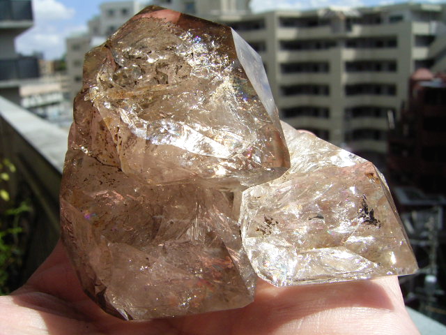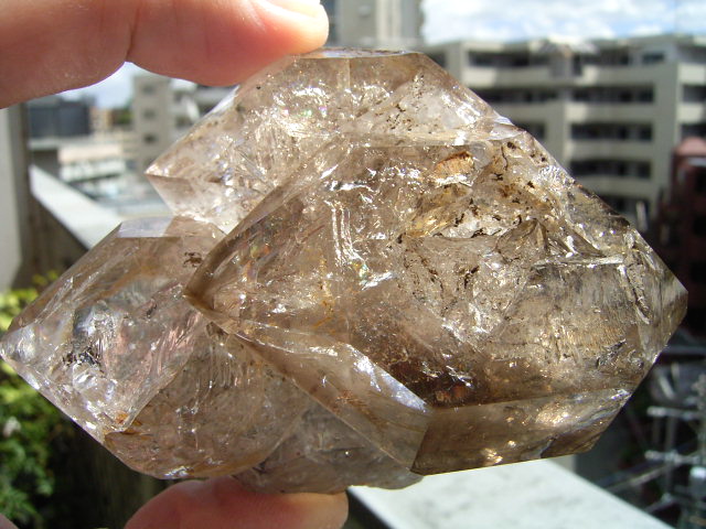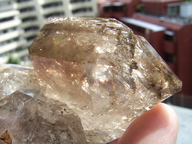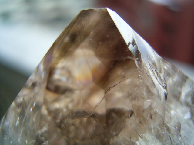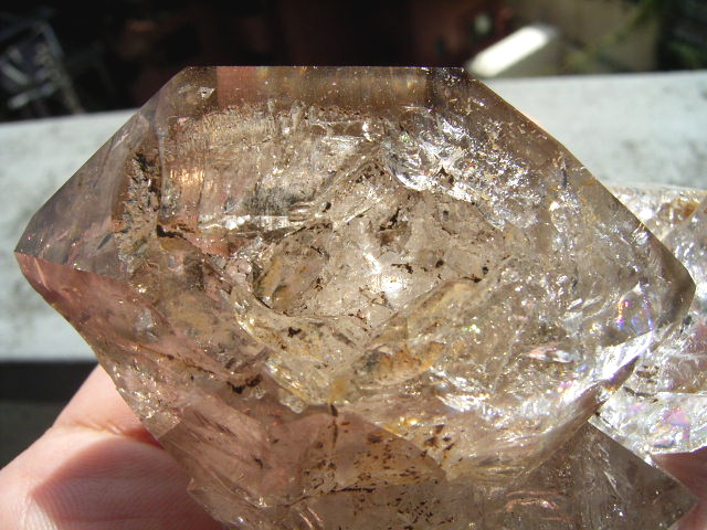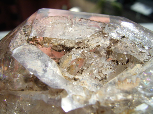 ファセット面の先は、「クリアファントム幻影」の成長線に見える透明ヴェールと円形虹が見えます。