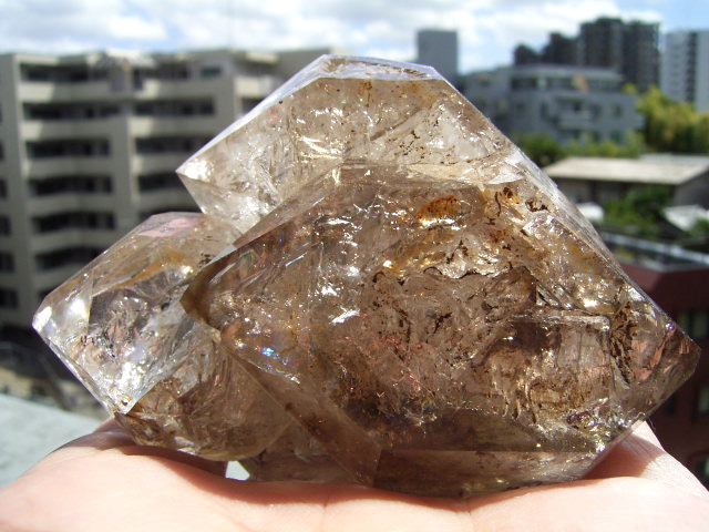 ※スモークが濃く、結晶をハチミツゴールド(太陽光の下で)に染めています。
