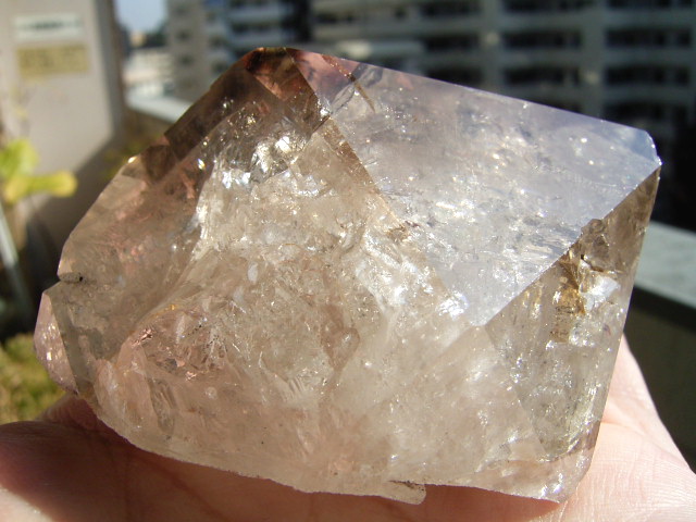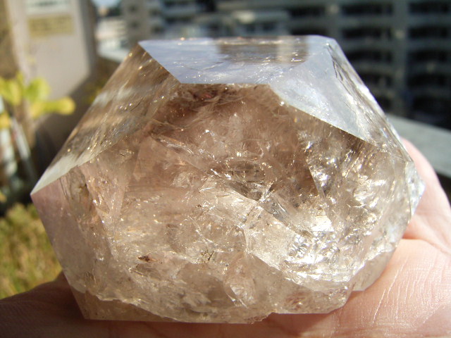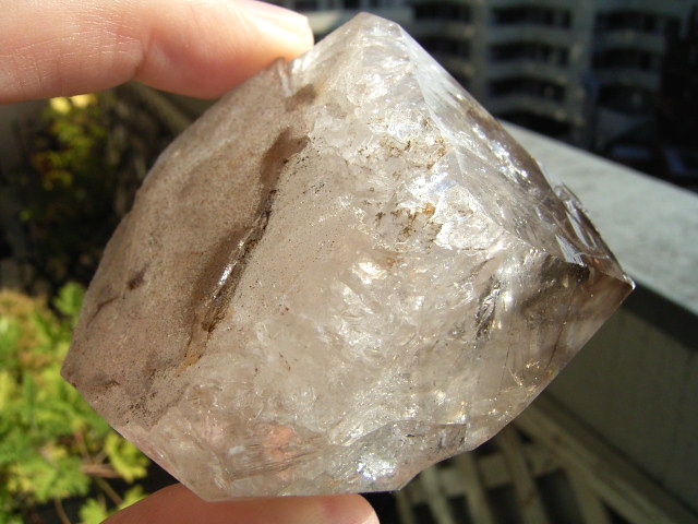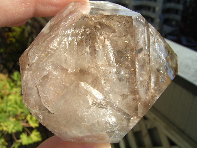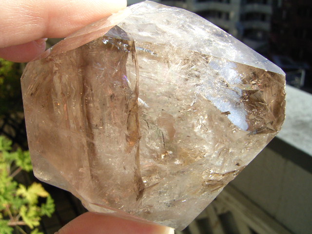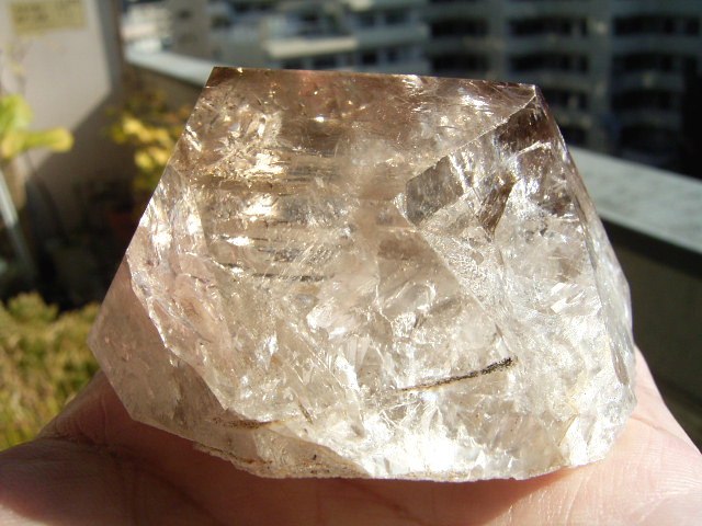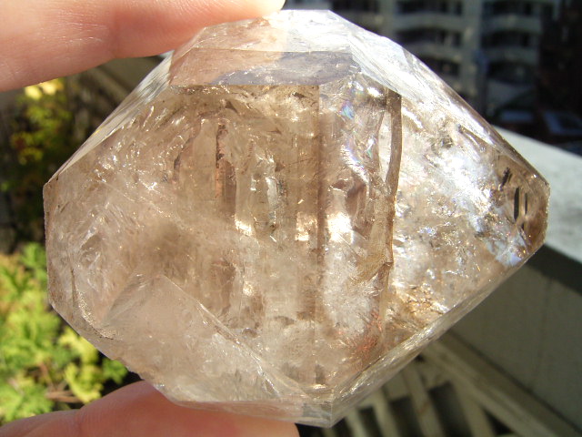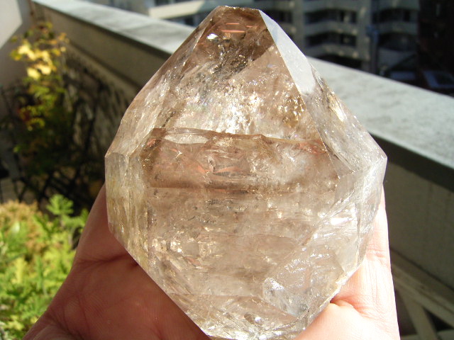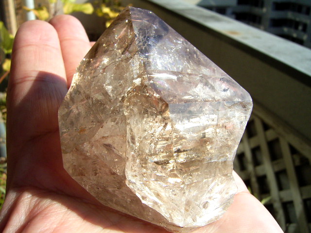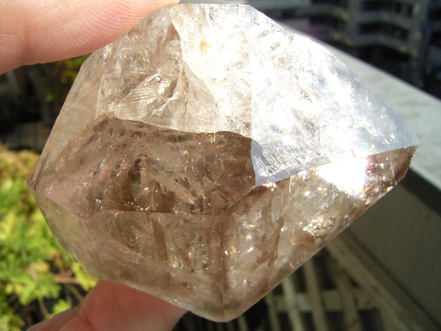 「煙幻影」で「エレスチャル」気泡は小さいものの、結晶の奥深くの虹が見通せるクリアさに、驚きです。