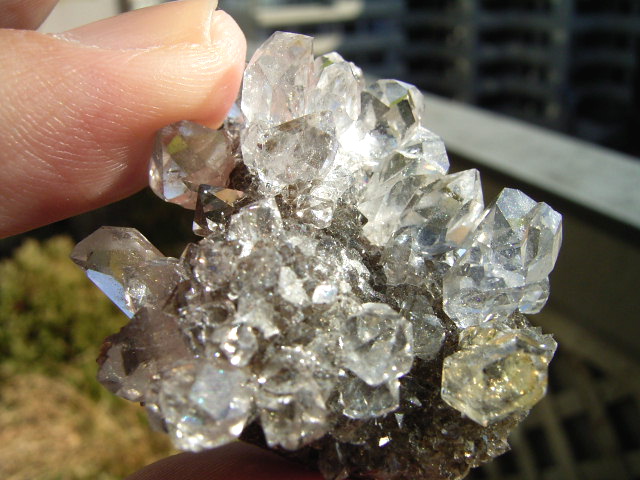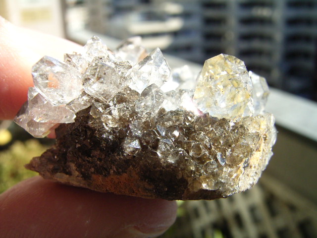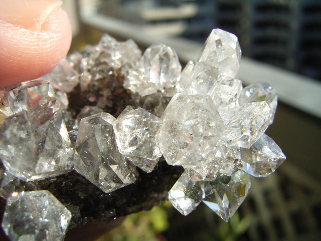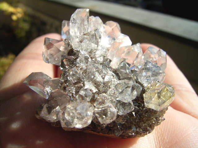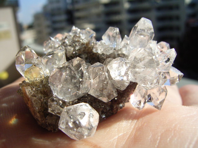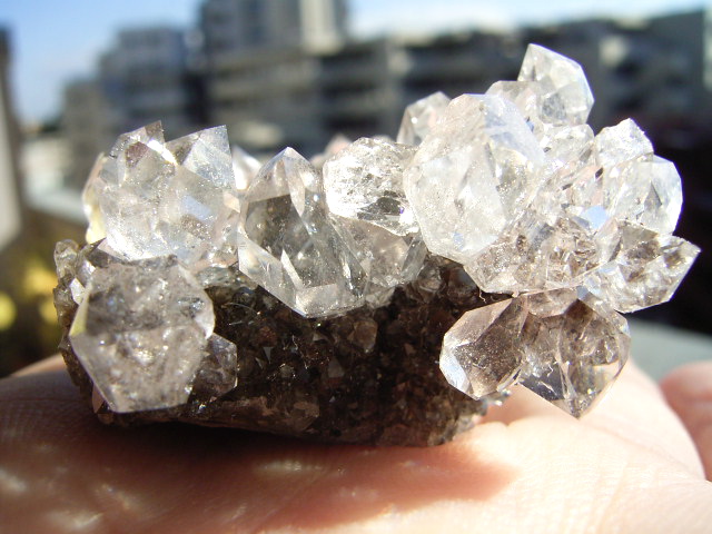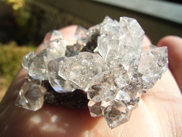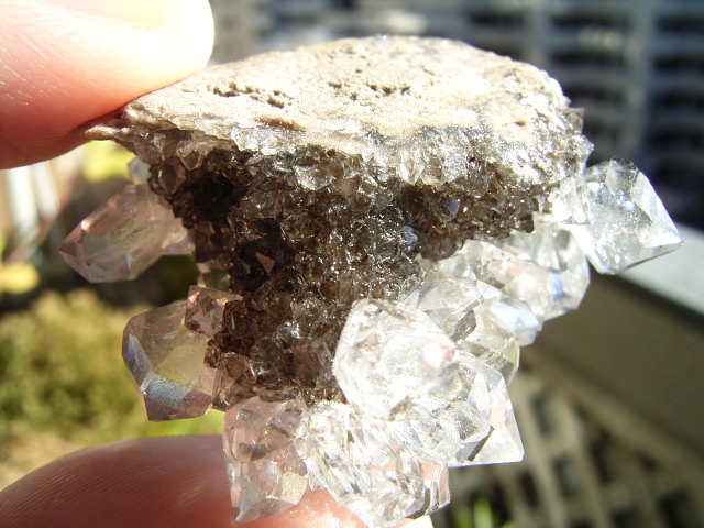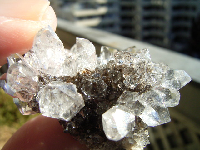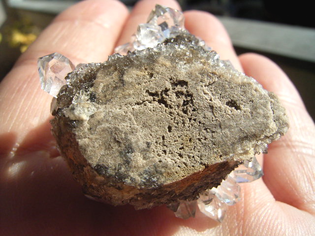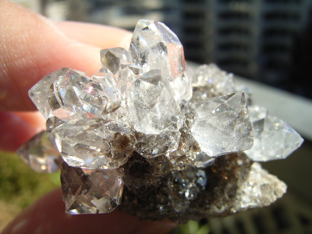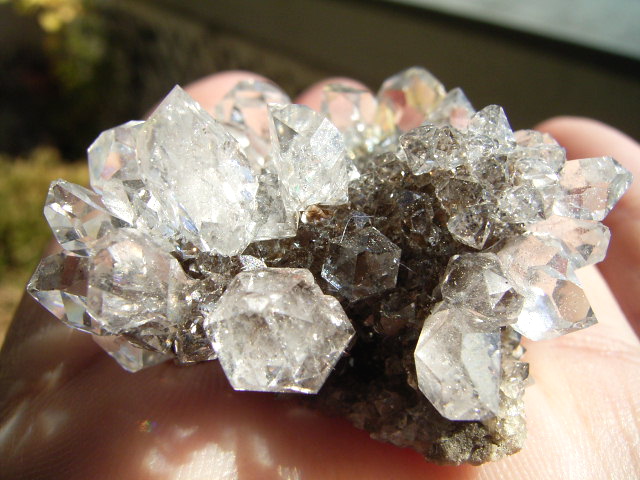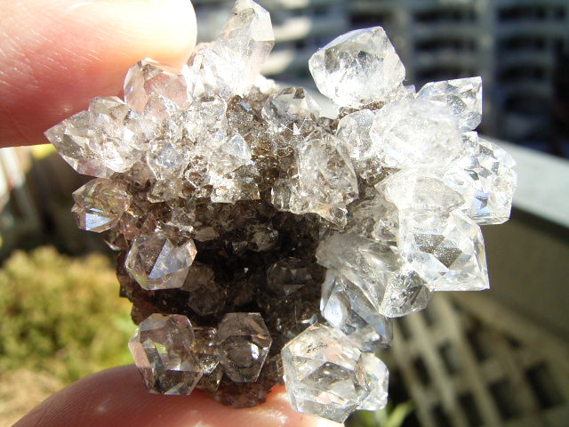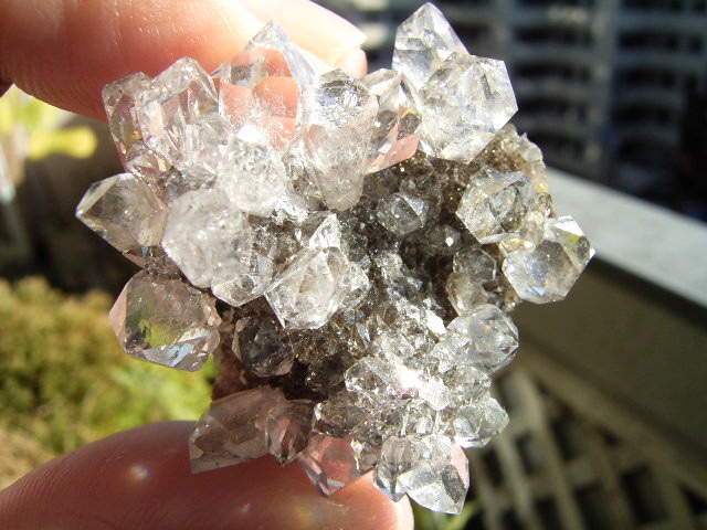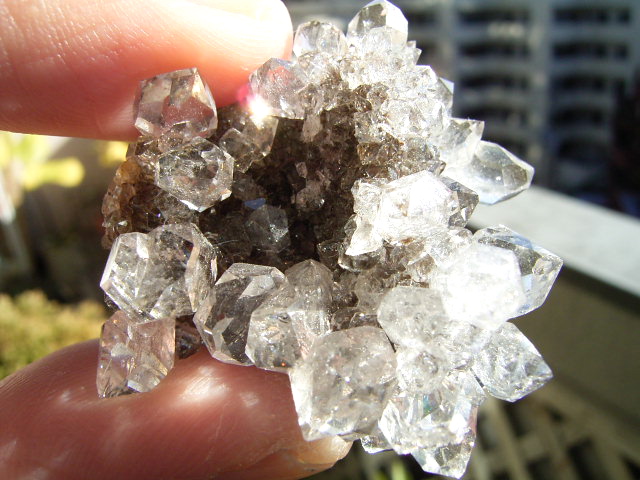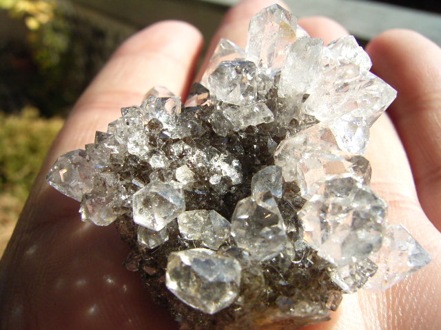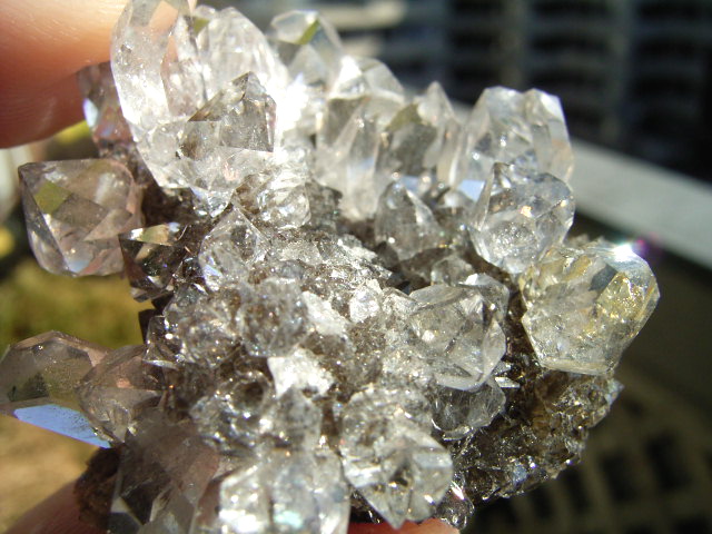 ★ドリュ・ドリューズィ:ハーキマーダイヤモンドは岩のくぼみに形成されますが、その時結晶の周りに出来る微小の結晶の群晶が『ドリュ』です。