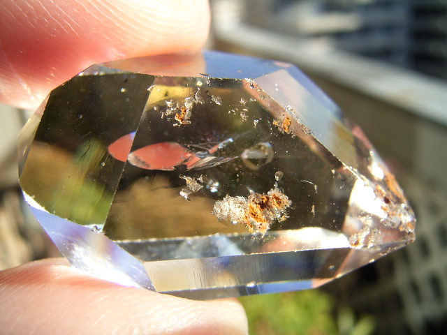 結晶中ほどの大きめの負晶と、そこから広がる透明ヴェール+鏡面幕。
