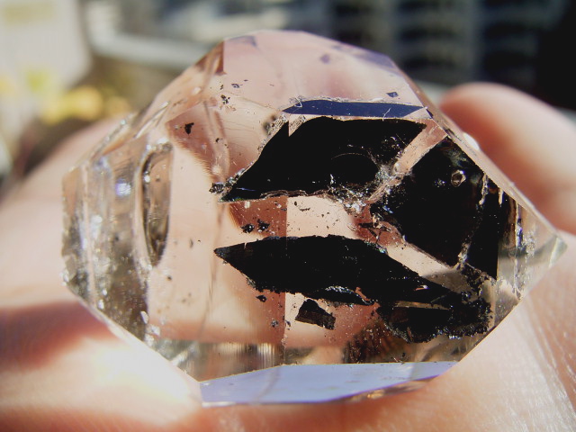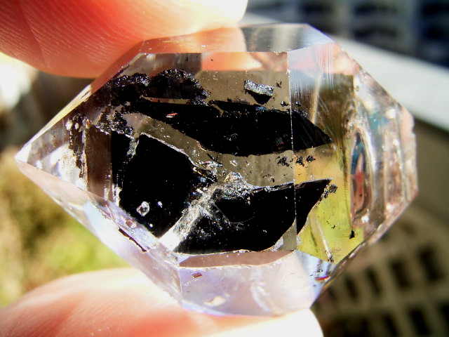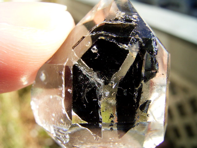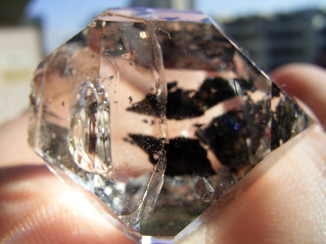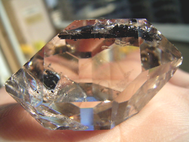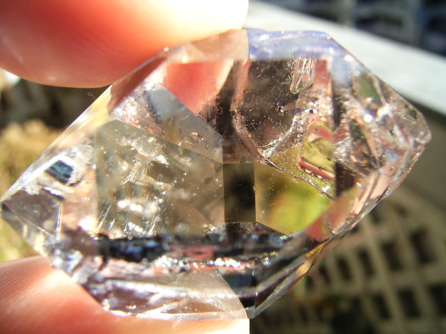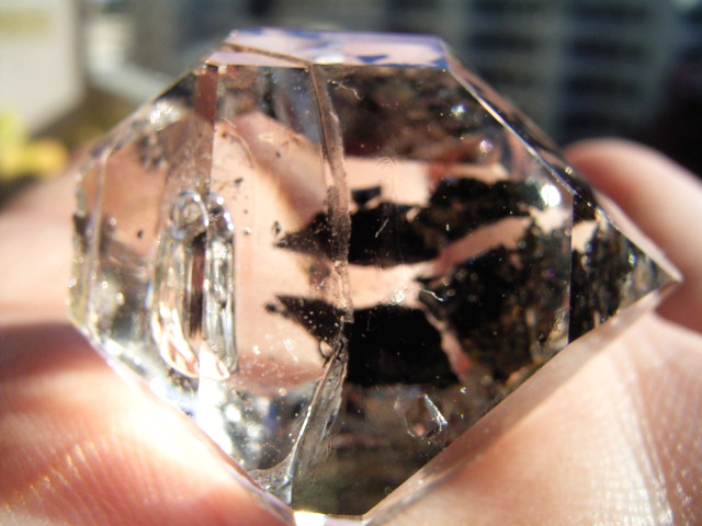 反対側のとがった先端側ファセット面の先に、4mmほどのクラスター干渉の輪郭が1つ。