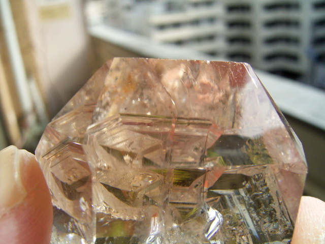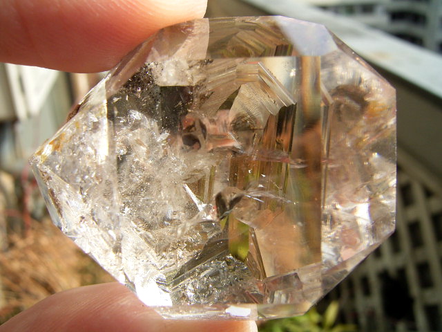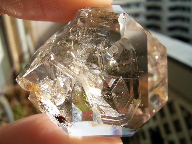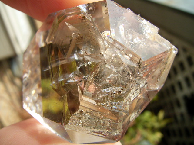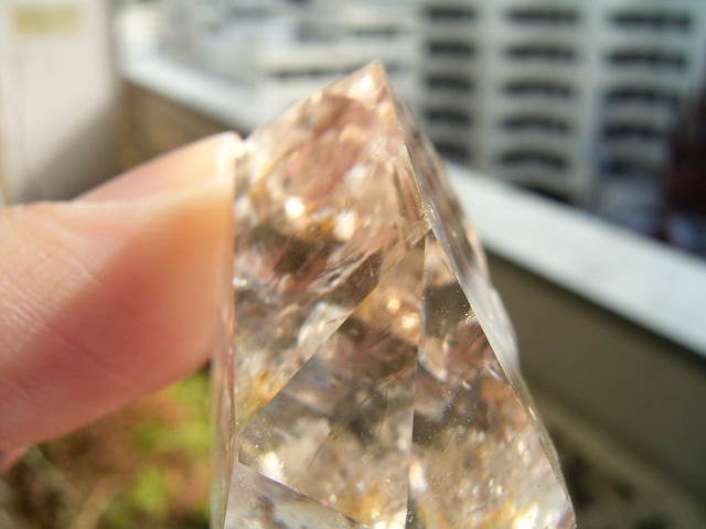 その外側に、はちみつゴールドの幻影が淡く重なって、太陽光では淡いゴールドに結晶を染めています。