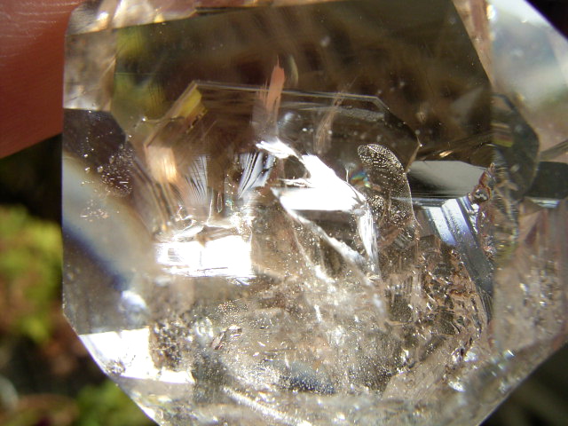 まず結晶オモテ側から言うと、結晶中ほどに、鏡面ヴェール・虹ヴェール・大虹ヴェール・銀河ヴェールが、幻影のように入っています。