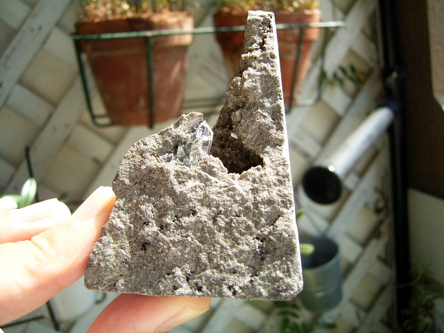 母岩に微細なドリュポケット(晶洞)があります。