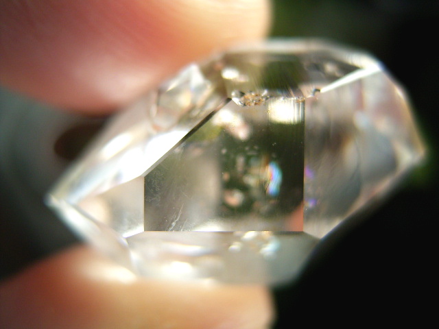 ファセット面のクリア結晶貫入と淡い貫入虹。