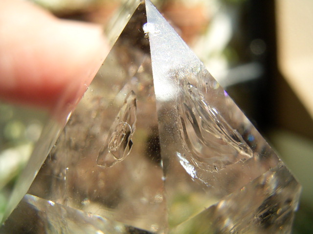 ◆ 小さなファセット面には、エレスチャル由来の2つの気泡があって、その内の1つが、肉眼でもハッキリわかりやすい「水入り」のポケットになっています。
