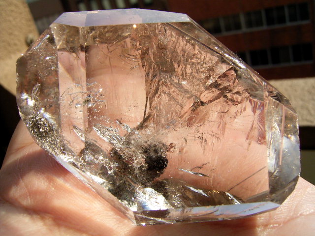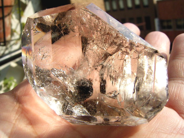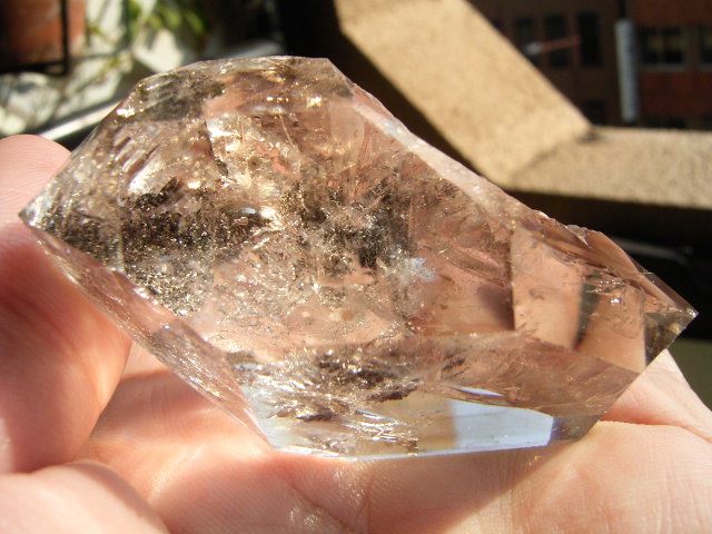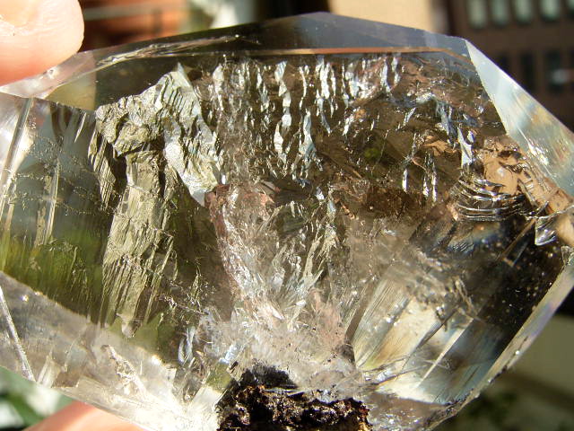 ハーキマーでも、普通ここまで大きくなると、クラックやヴェールで白っぽくなってしまうのですが、これは内部どころか向こう側まで完全に見透せる、素晴らしい透明度を持った超スーパークリア結晶です。