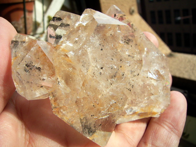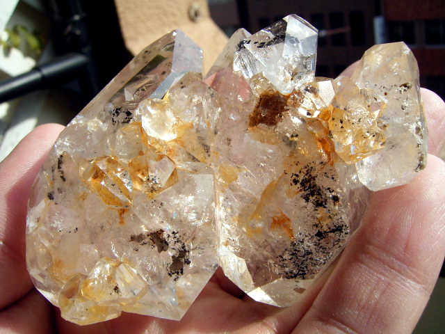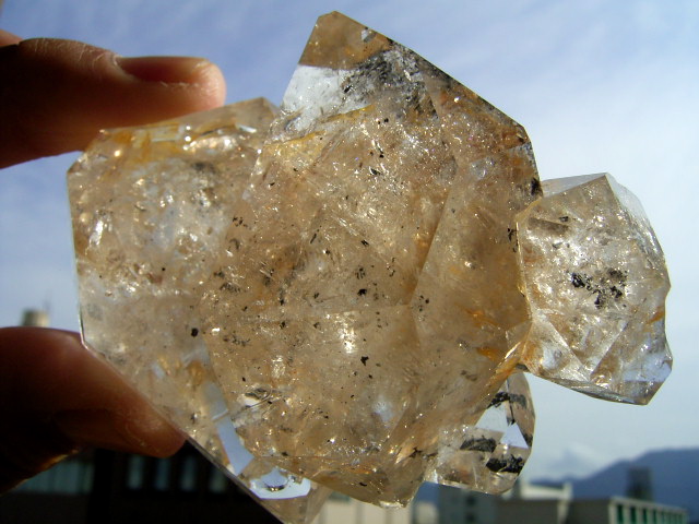 2つの特大結晶の色合い「淡いはちみつ色」は、ファントム幻影の煙スモークに染まっているからですが、