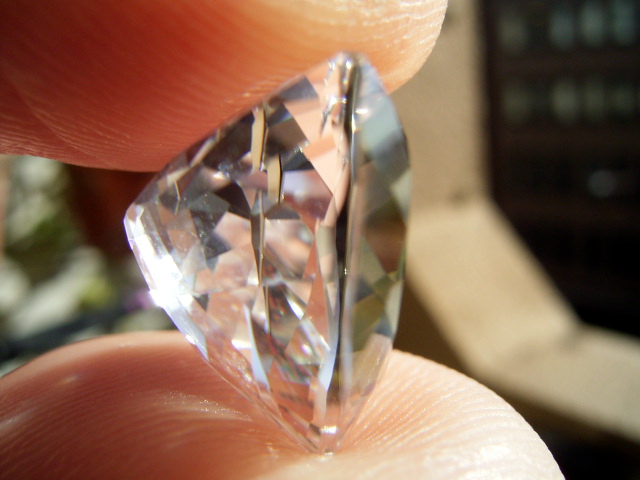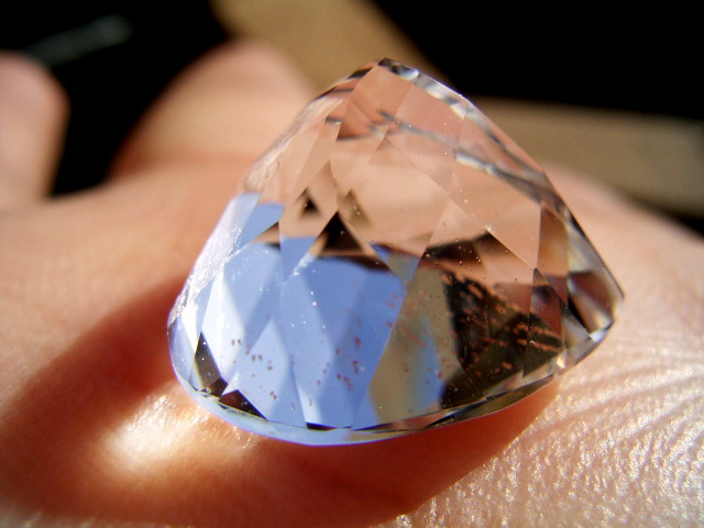 結晶の内側の面に光が集まって、プリズム効果とも相まって、虹のような反射が綺麗です。
